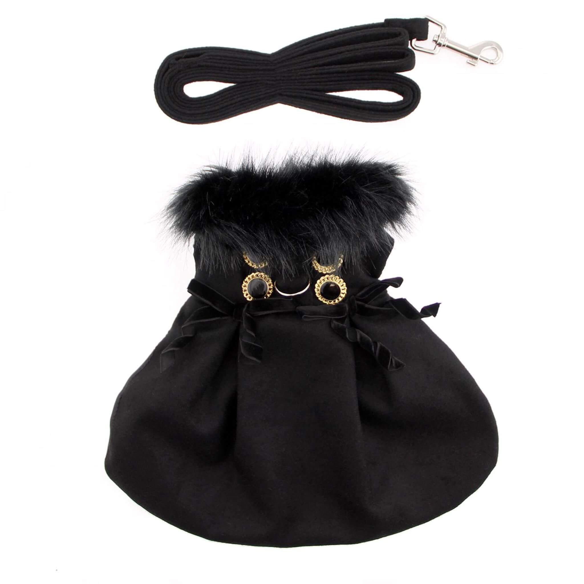 Doggie Design's beautifully designed Black Wool Fur-Trimmed Dog Harness Coat is sure to be a big hit in the dog park this Fall!