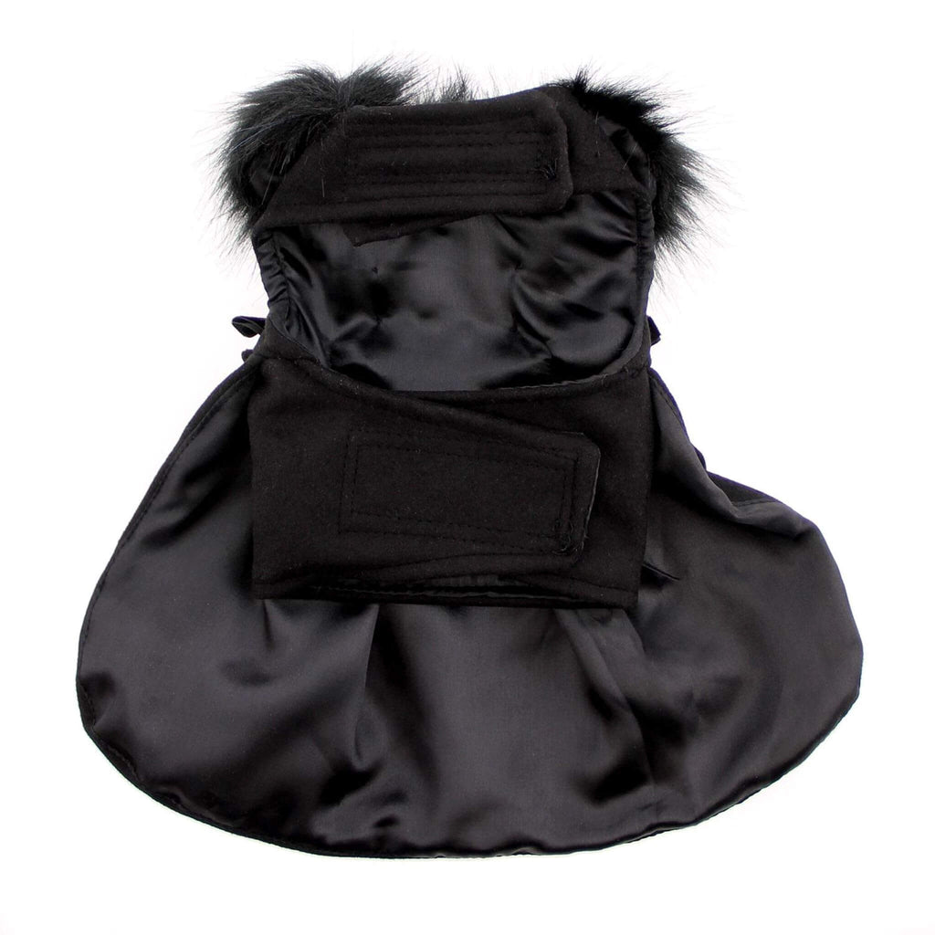 Black Wool Fur-Trimmed Dog Harness Coat