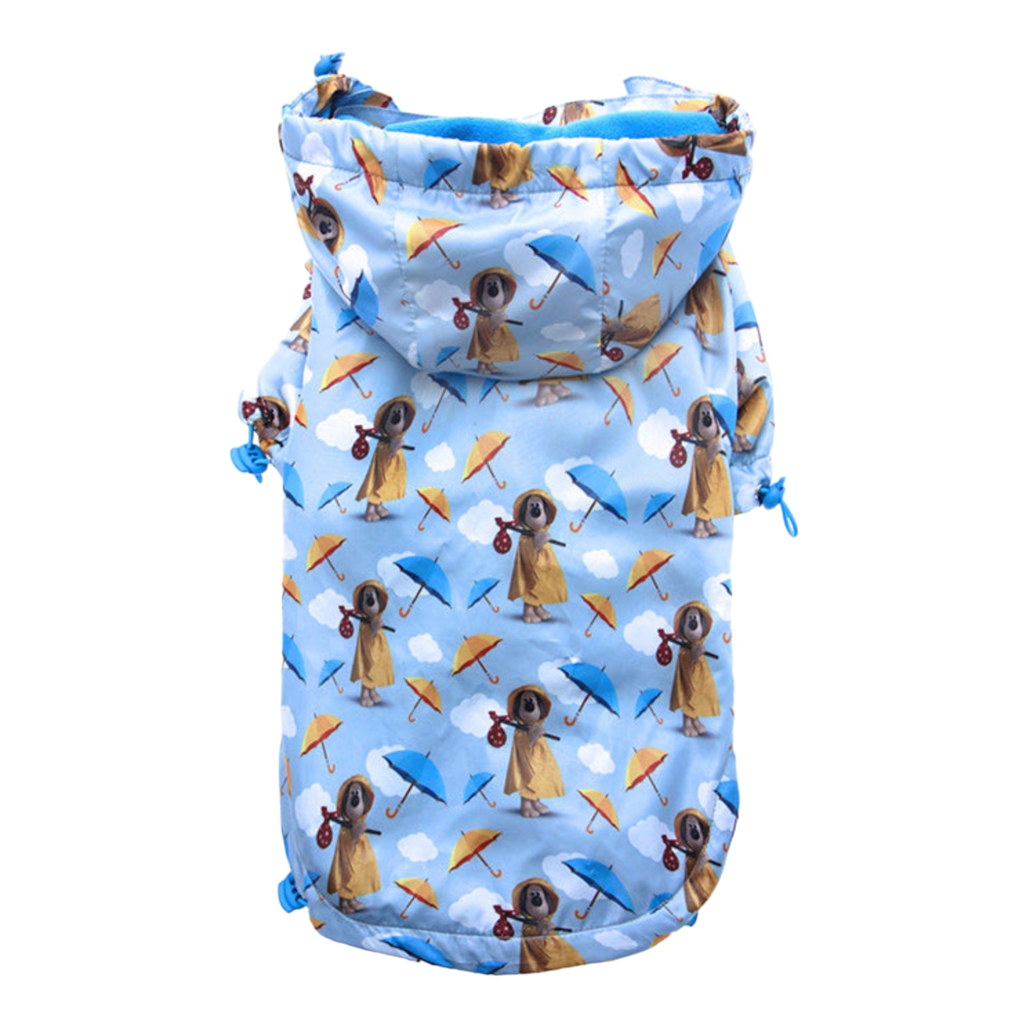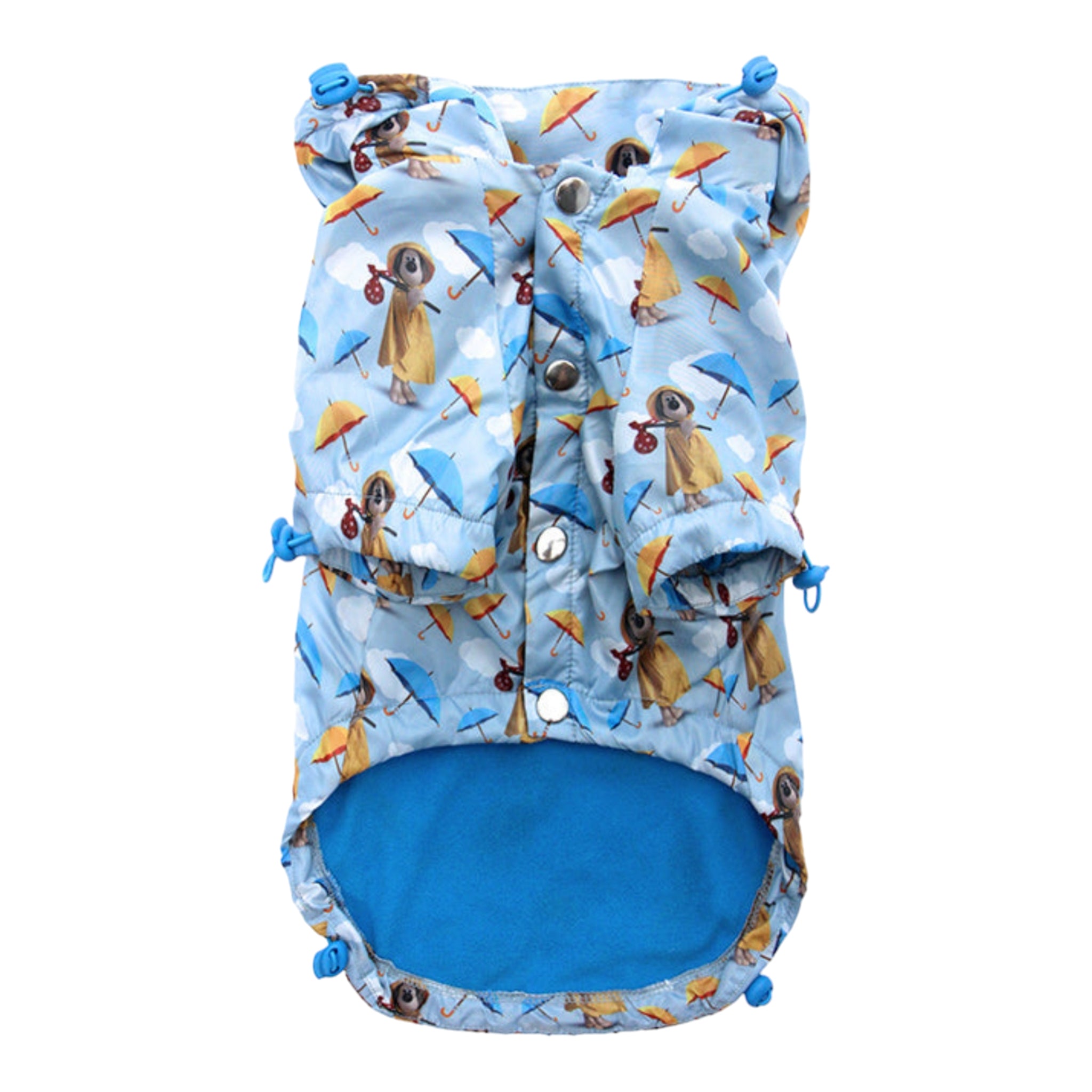 Features include a soft fleece lining, a drawstring detachable hood, and a drawstring hem, so it's easy to achieve a nice snug fit that will keep your pet warm, dry and comfortable. Popper buttons make the raincoat super easy to put on and take off, and a leash hole is conveniently located on the back, so your dog can wear a harness underneath.