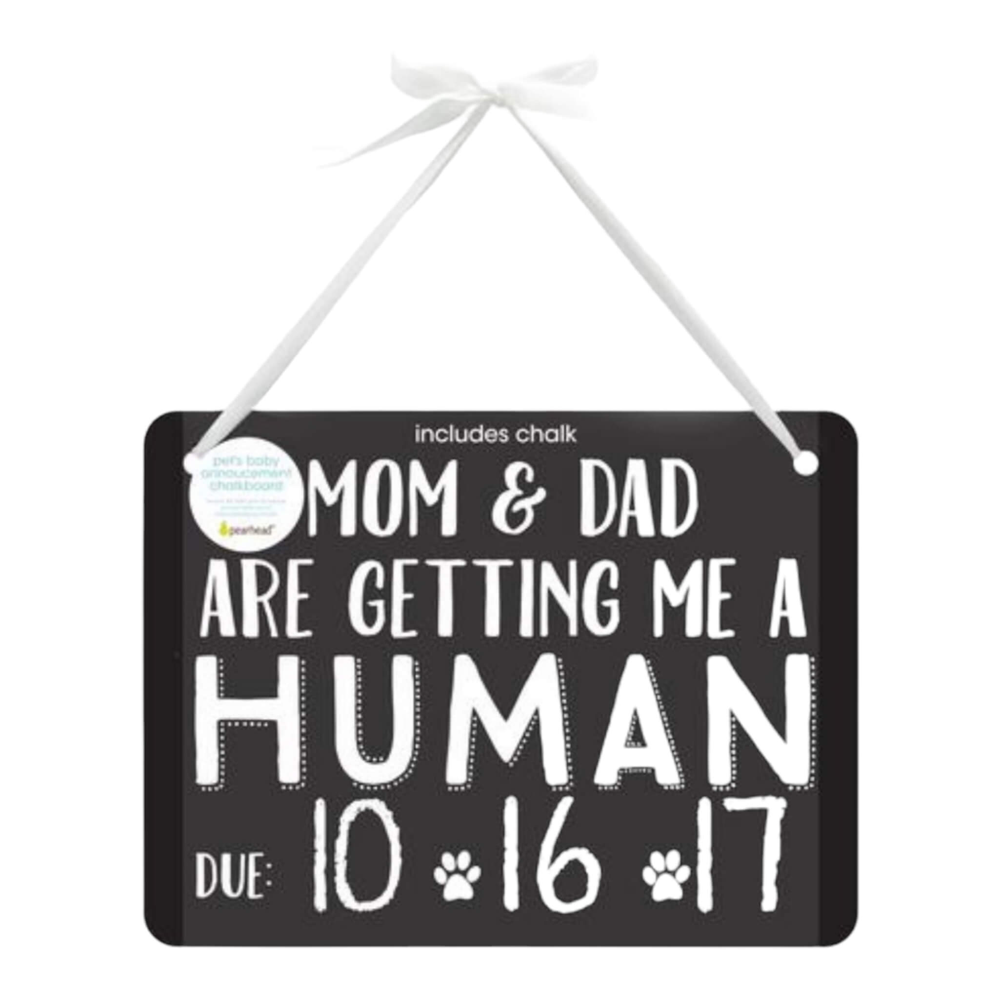 The Baby Announcement Chalkboard is a super fun way to include your pet as you make the big announcement. Customizable and easy to reuse, you can simply wipe the board with a damp cloth. Perfect for pets of all sizes, the chalkboard features ribbon and comes with a piece of white chalk. All you have to do is fill in your baby's expected arrival date with the white chalk, tie the ribbon gently around your pet's neck and snap a photo to share with the world. Pearhead cautions that using other chalk could stain the board.