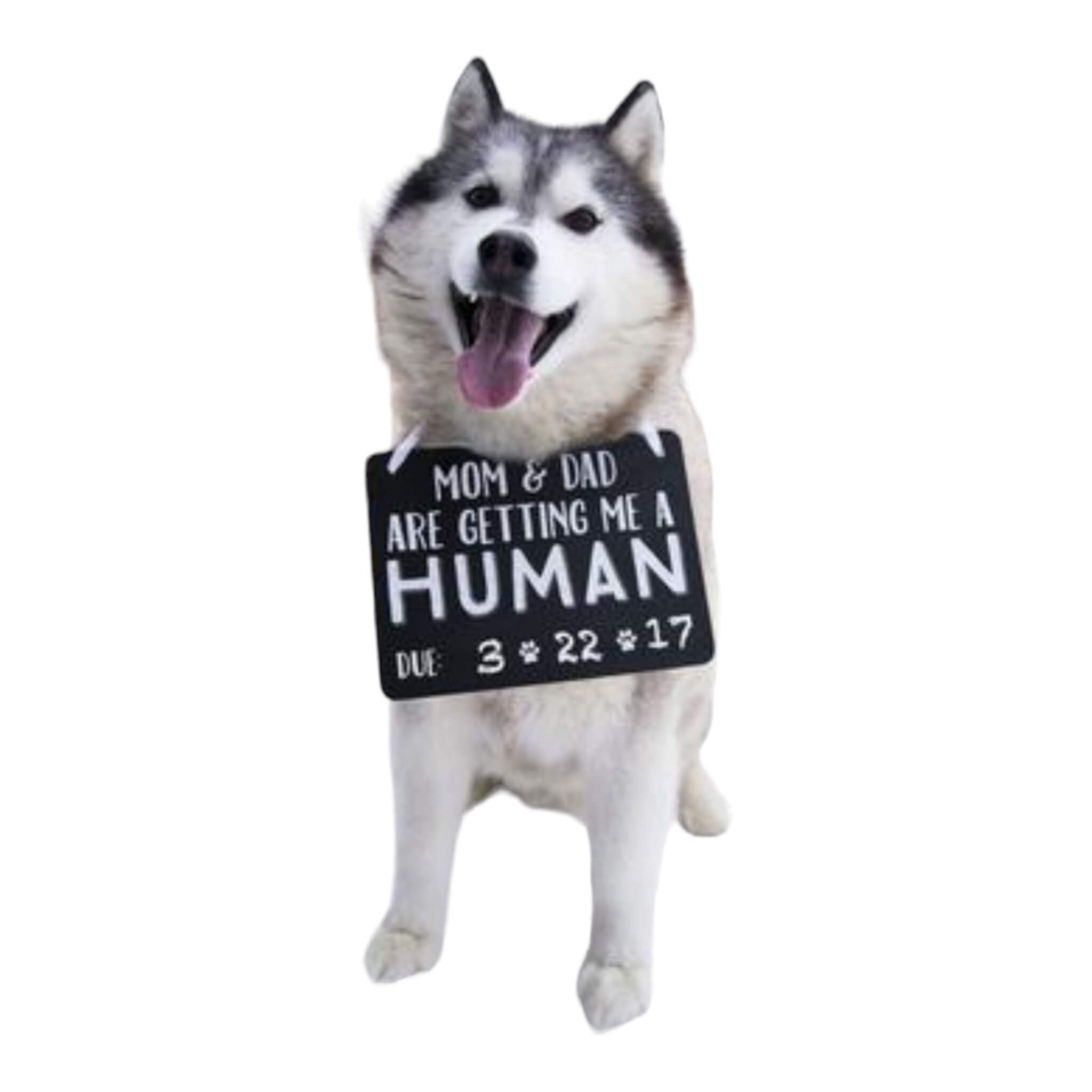 Let your dog be a part of your big announcement to the world that you're expecting a baby! Incorporating Pearhead's cute photo prop sign chalkboard into your announcement is sure to make everyone smile as they learn your news!