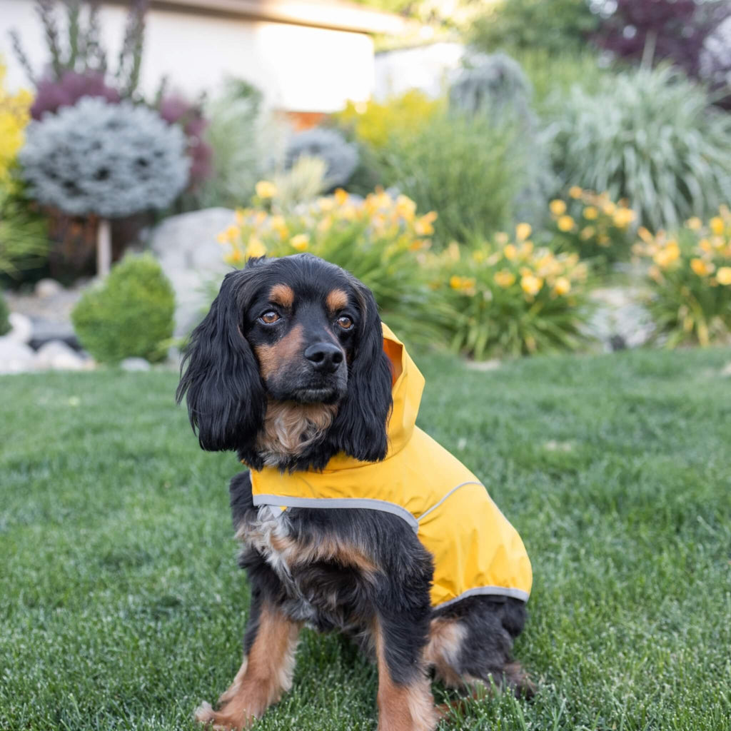 • Lightweight, water-resistant raincoat for dogs