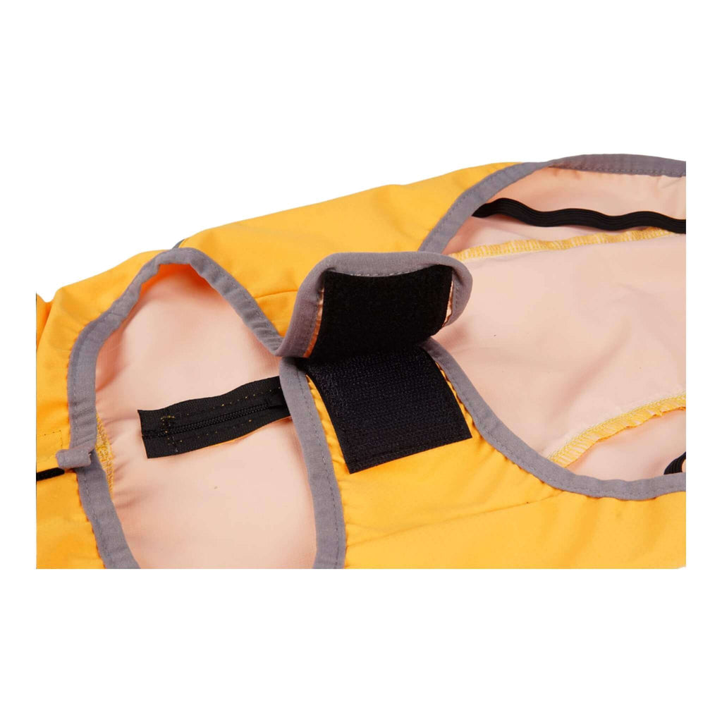 • Adjustable Velcro fasteners at neck and belly