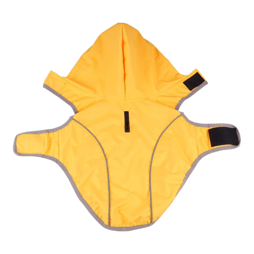Made from water-resistant fabric, the Cumbria Dog Raincoat is extremely practical for all those rainy-day walks. Extremely lightweight and comfortable, the coat features a bright yellow water-resistant material with reflective strips for better visibility in dark conditions. Easy to achieve a perfect fit, the coat features adjustable Velcro fasteners at the neck and girth and adjustable straps at the back legs to hold it securely in place. A hood offers additional protection from the elements.