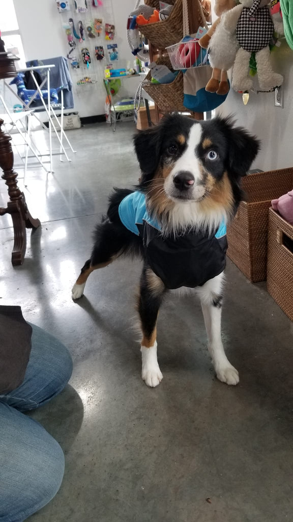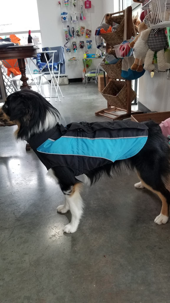 As dog owners ourselves, we know that getting a coat on a dog that doesn't want to wear one can be extremely difficult, so we wanted to make sure that our coat was as easy as possible to get on and off in a hurry. We achieved this with a unique design that opens up fully on the ground, allowing your pet to simply step into it. You then take both sides of the coat and wrap it around your pet's torso. A concealed zippered closure on the back makes fastening the coat super easy.