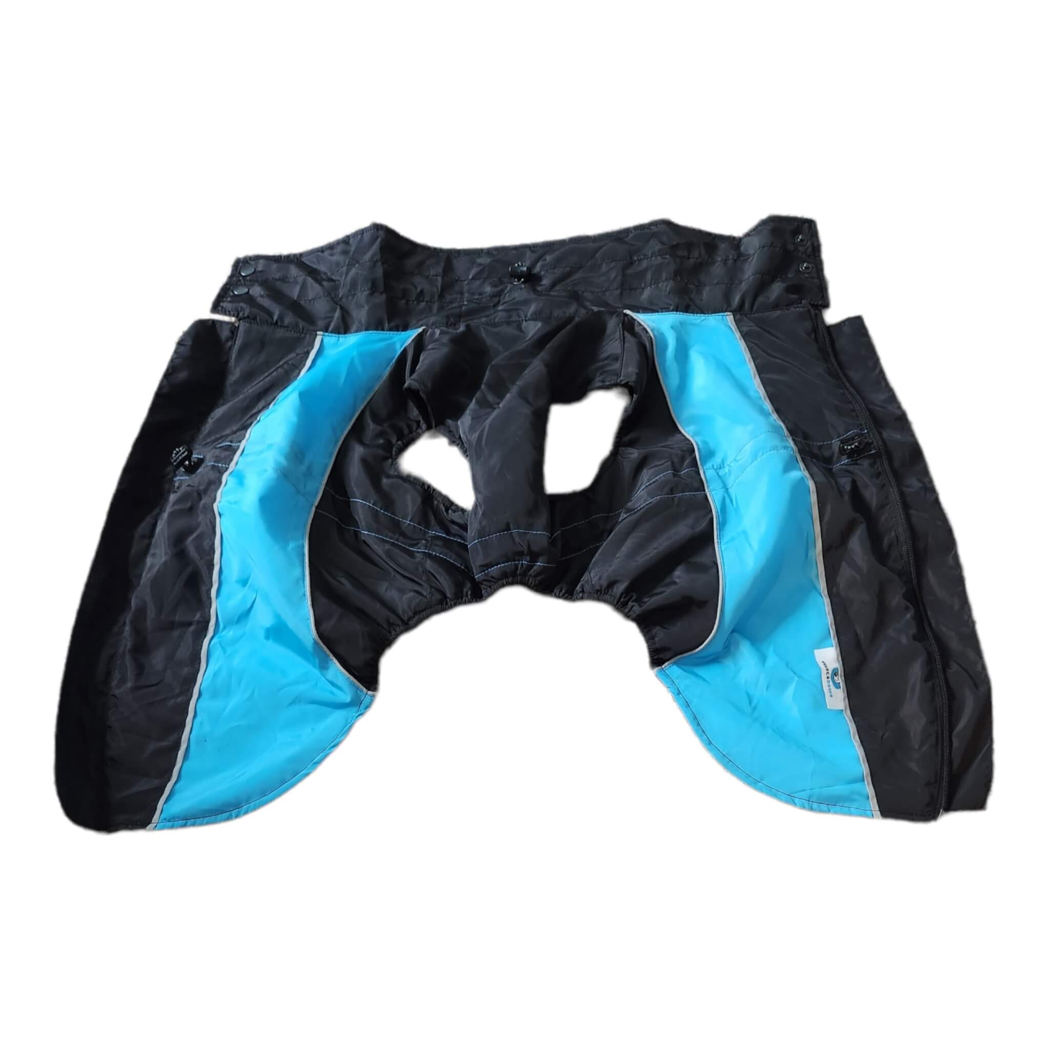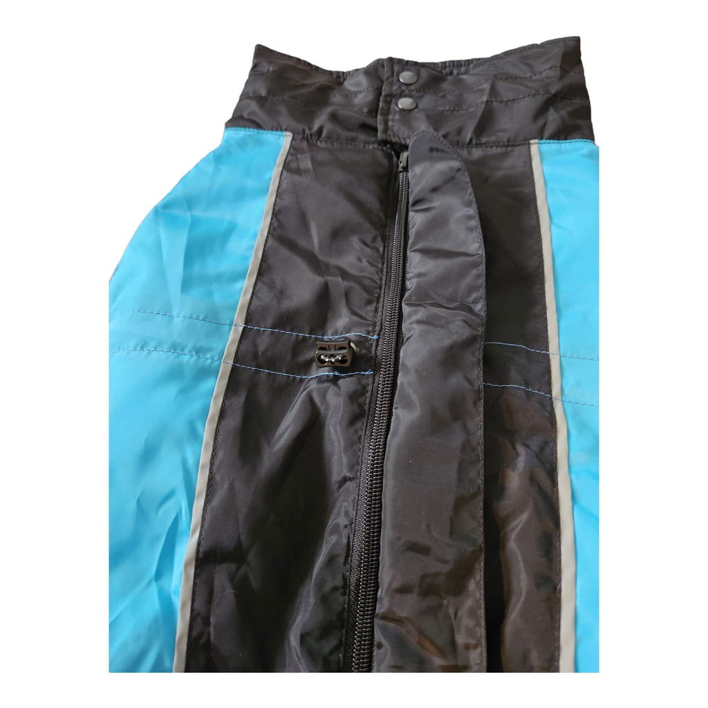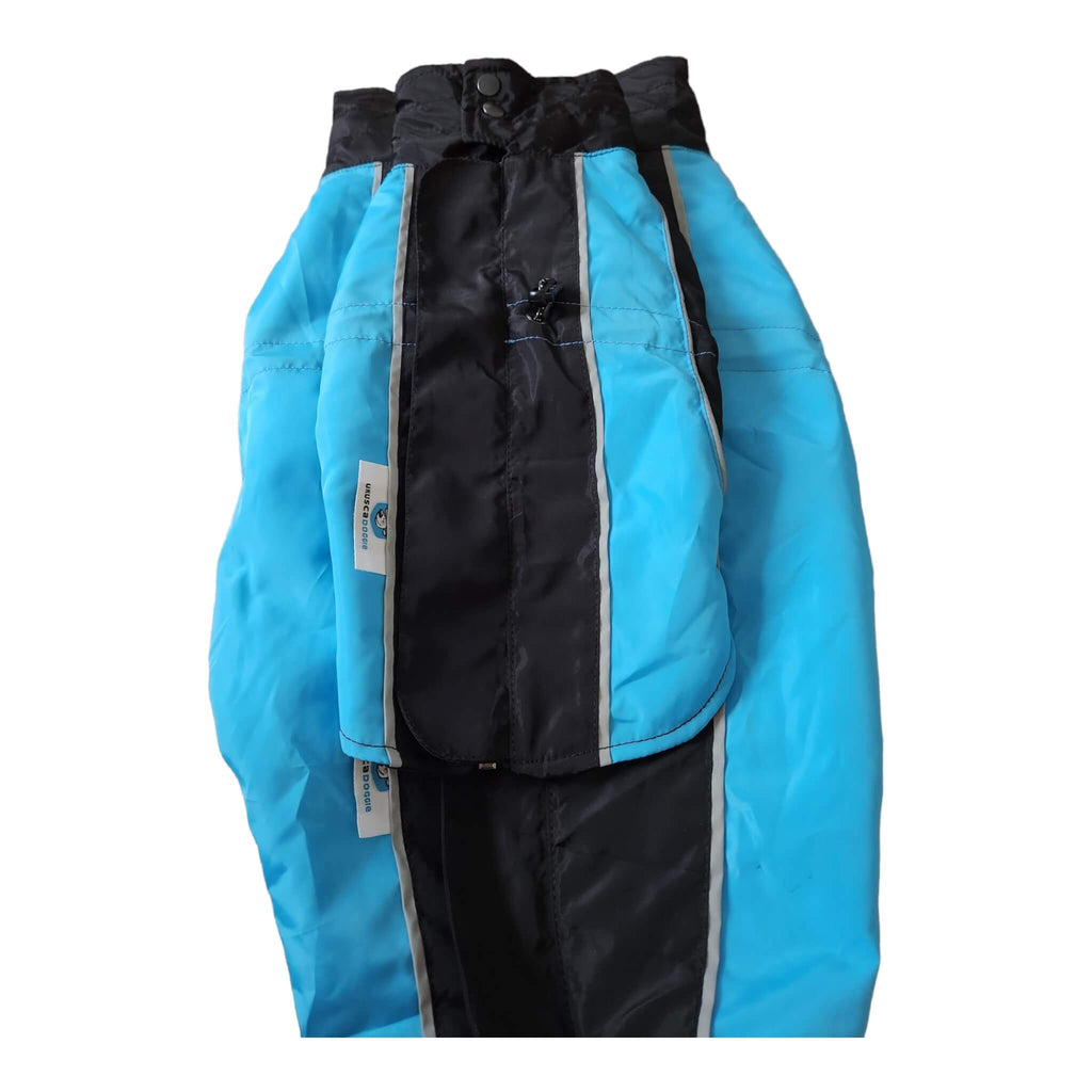 Made from a 100% Polyester waterproof shell and lining, unlike most coats on the market, the lining material will not "grab" your dog's fur. Easy to achieve the perfect fit with elastic stoppers located at the neck and belly, the ample neck section of the coat also features smart button closures that will prevent any moisture from getting in, keeping your pet nice and dry.