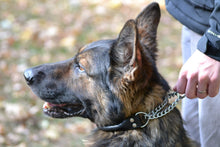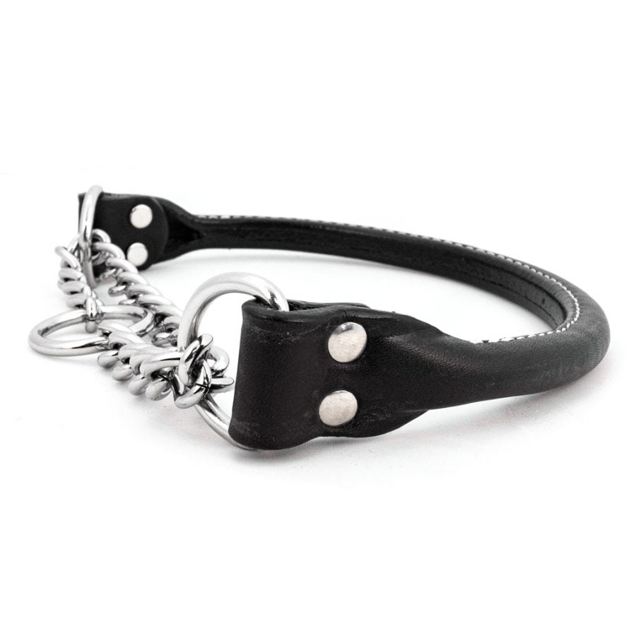 Based in Auburn, New York, Auburn Leathercrafters' collection of Rolled Leather Martingale Dog Collars is not only beautifully designed, but the collars will ensure your dog's comfort and are built to stand the test of time. Featuring bridle leather, paired with a stainless steel chain, we are confident that this collar choice will definitely exceed all expectations. Bridle leather is often used in the equestrian arena and is renowned for its strength, durability and beauty. These amazing collars are a great training option, perfect for controlling excessive pulling, and they will not mat your dog's fur, whether it's long or short.