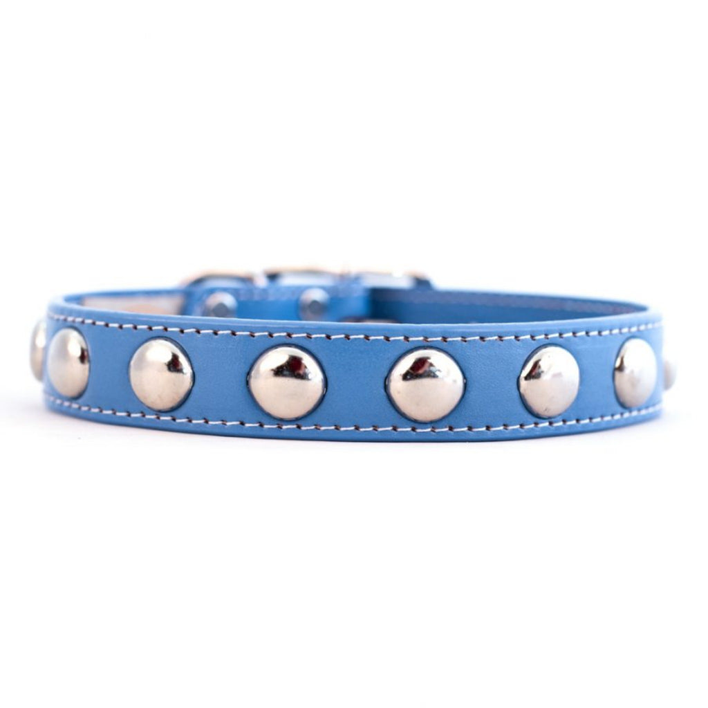 Offering dog owners something a little out of the ordinary, the Silver Studded Leather Dog Collar will definitely prove to be a fun addition to any dog's closet and is sure to make him stand out at the dog park. Made from top quality full grain bridle leather, the edges of the collar are hand finished, making it a lovely, comfortable option for your pet. Solid hardware and smooth studs featuring a bright nickel finish complete the look.
