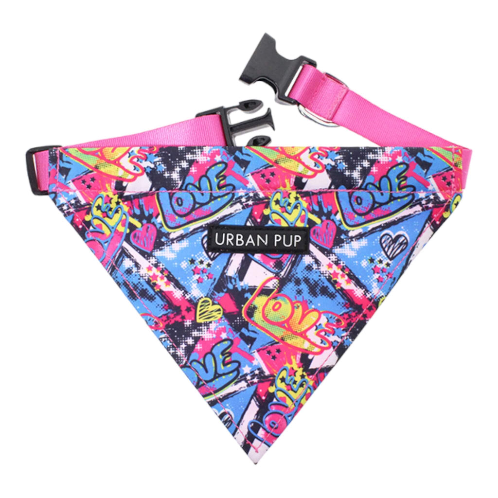 The Pink Graffiti Dog Bandana is definitely on-trend, inspired by local street art. Although it's extremely lightweight, don't be deceived, it's incredibly strong. Doubling as a regular collar, simply attach your dog's leash to the D-ring, and you're ready to go.