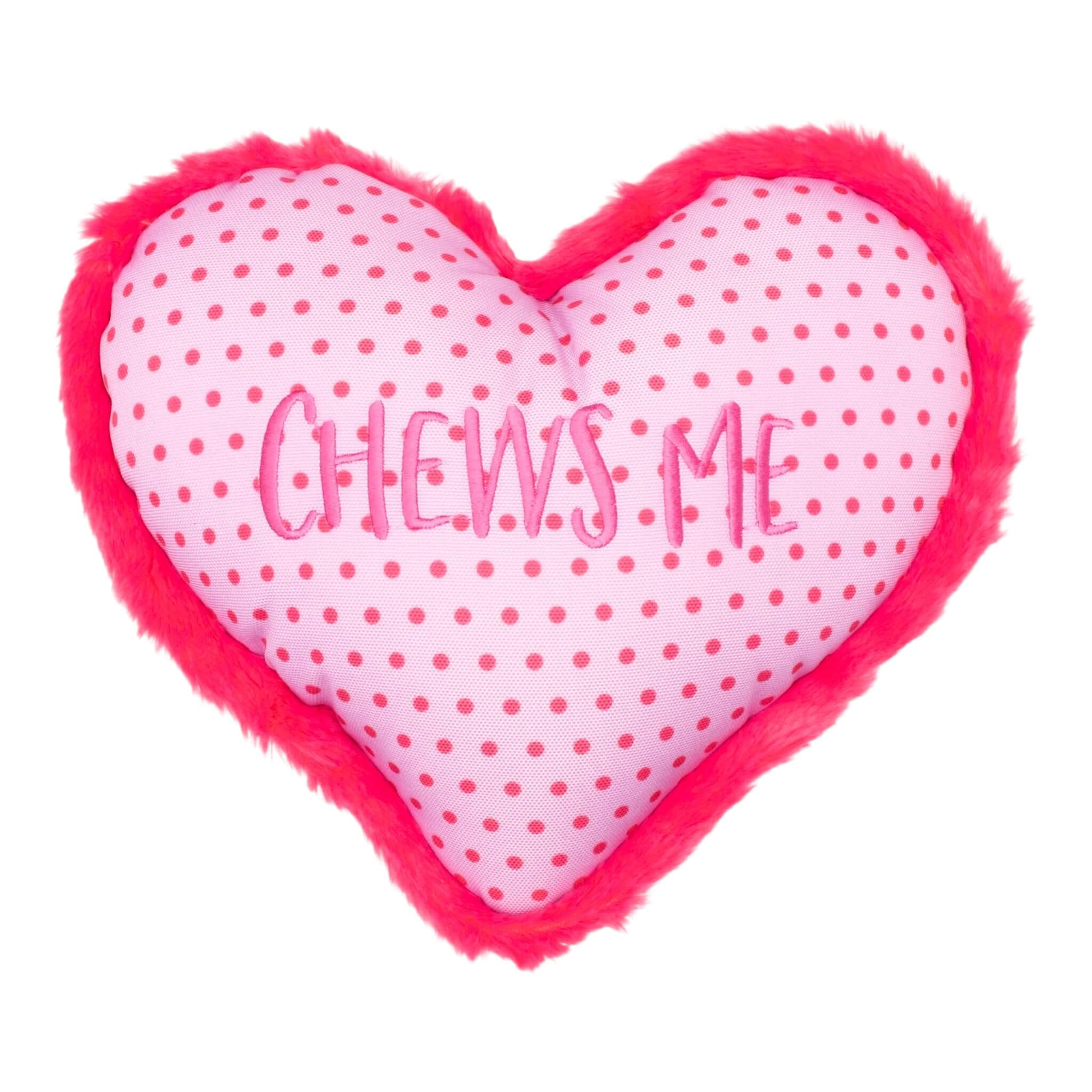Crafted with a focus on durability, without sacrificing style, this toy is perfect for interactive play, toss-and-fetch, or a satisfying solo chew session. Certainly not your average plush dog toy, the Chews Me Heart offers a satisfying texture that feels great on teeth and gums, while the vibrant pink color and charming "Chews Me" embroidery make it a standout in any toy box. The perfect gift for Valentine's Day!