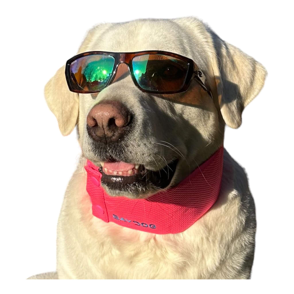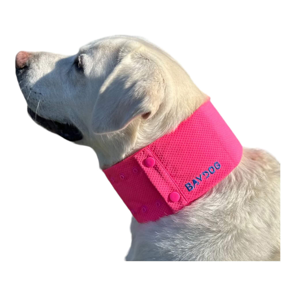 Dog wears Arctic Bay Cooling Dog Collar in Sunset Pink