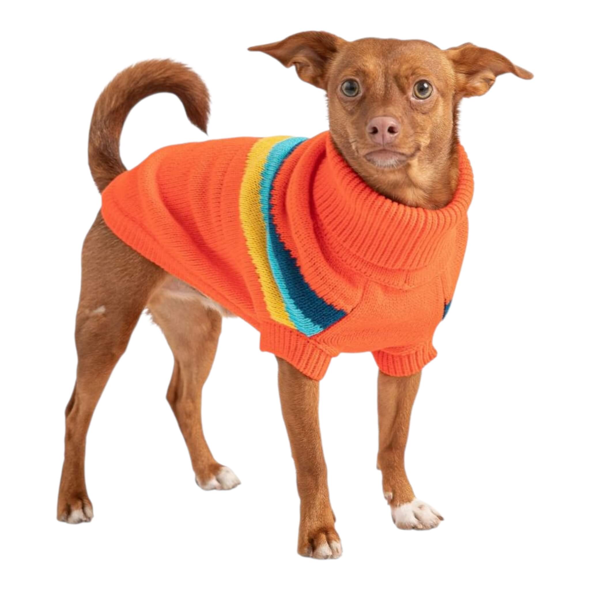 Make a big statement while keeping your pup cozy with GF Pet's Alpine Dog Sweater in vibrant Orange! This comfortable, retro-inspired turtleneck dog sweater is a must-have for all trendsetting dogs out there. Whether your dog is snuggling indoors or heading outside into the elements, this unique sweater is sure to get him noticed!
