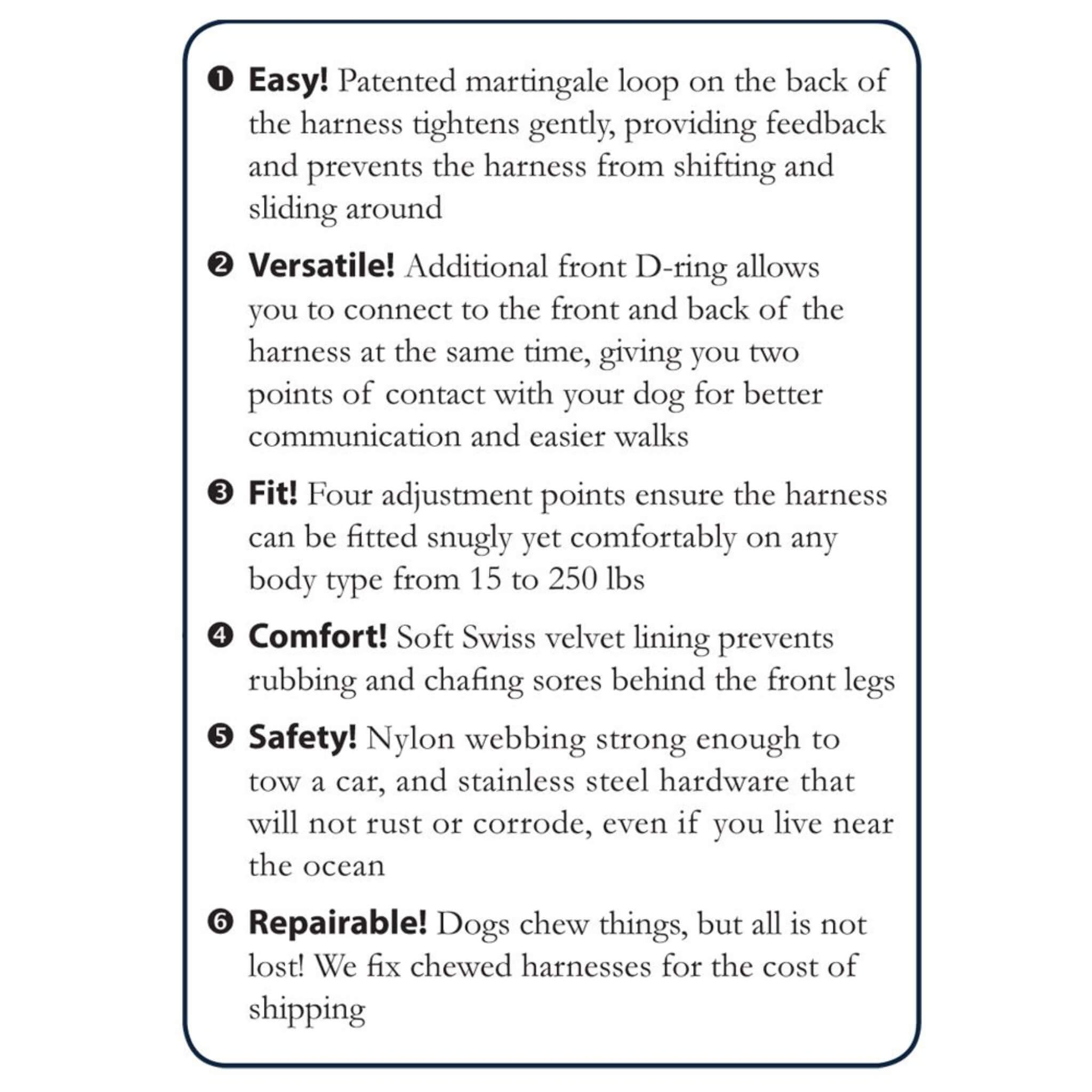 Made in the USA by 2 Hounds Design, the Freedom No-Pull Dog Harness incorporates a patented martingale loop on the back, which tightens gently around your dog's chest to discourage pulling. Made from industrial strength nylon webbing, the patented Freedom No-Pull Dog Harness features solid stainless steel hardware and reinforced X-stitching, so you can be sure that it will hold up to the strongest of dogs. 2 Hound Design offers pet owners an amazing guarantee - if your dog chews the harness, they will replace up to two chewed straps for just the cost of shipping.