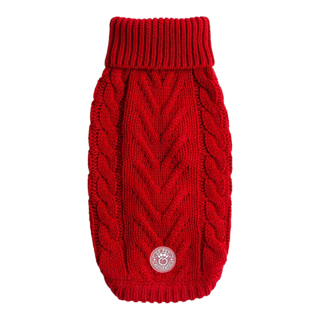 Your pup will definitely be on trend when he's sporting one of GF Pet's trendsetting collection of sweaters! Timeless and luxurious, the attractive Chalet Dog Sweater is made from 100% Acrylic and features a timeless cable-knit pattern, a cute turtleneck and ribbed armholes. It will definitely keep your best friend warm and cozy this Winter.