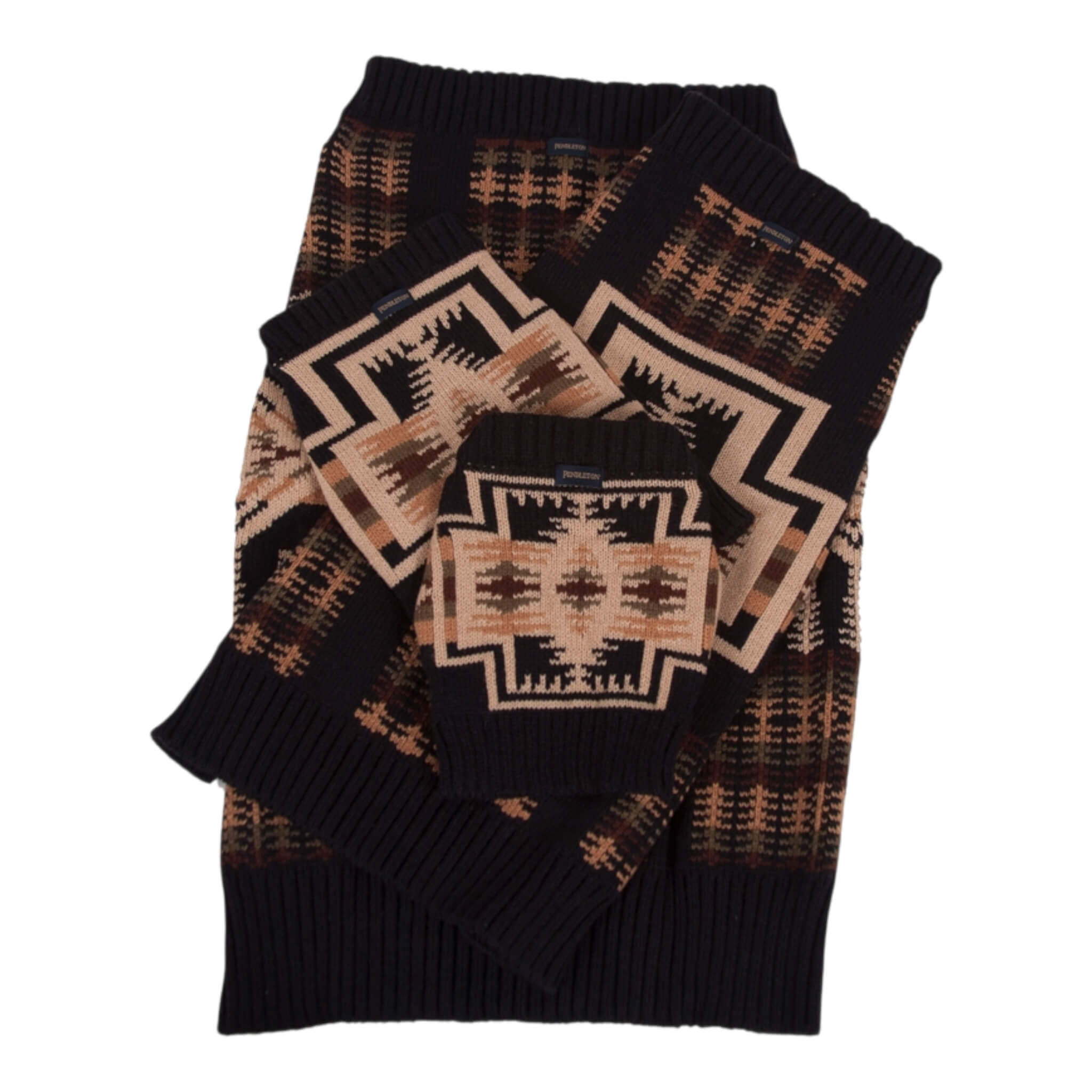 Give your furry friend a touch of classic American heritage with the Pendleton Knitted Dog Sweater - Harding. Inspired by the iconic Pendleton Harding pattern, this cozy sweater features a striking geometric design in rich, earthy tones. Originally a blanket created for President Warren G. Harding's 1923 visit to Oregon, the pattern is a symbol of warmth, quality, and timeless style.