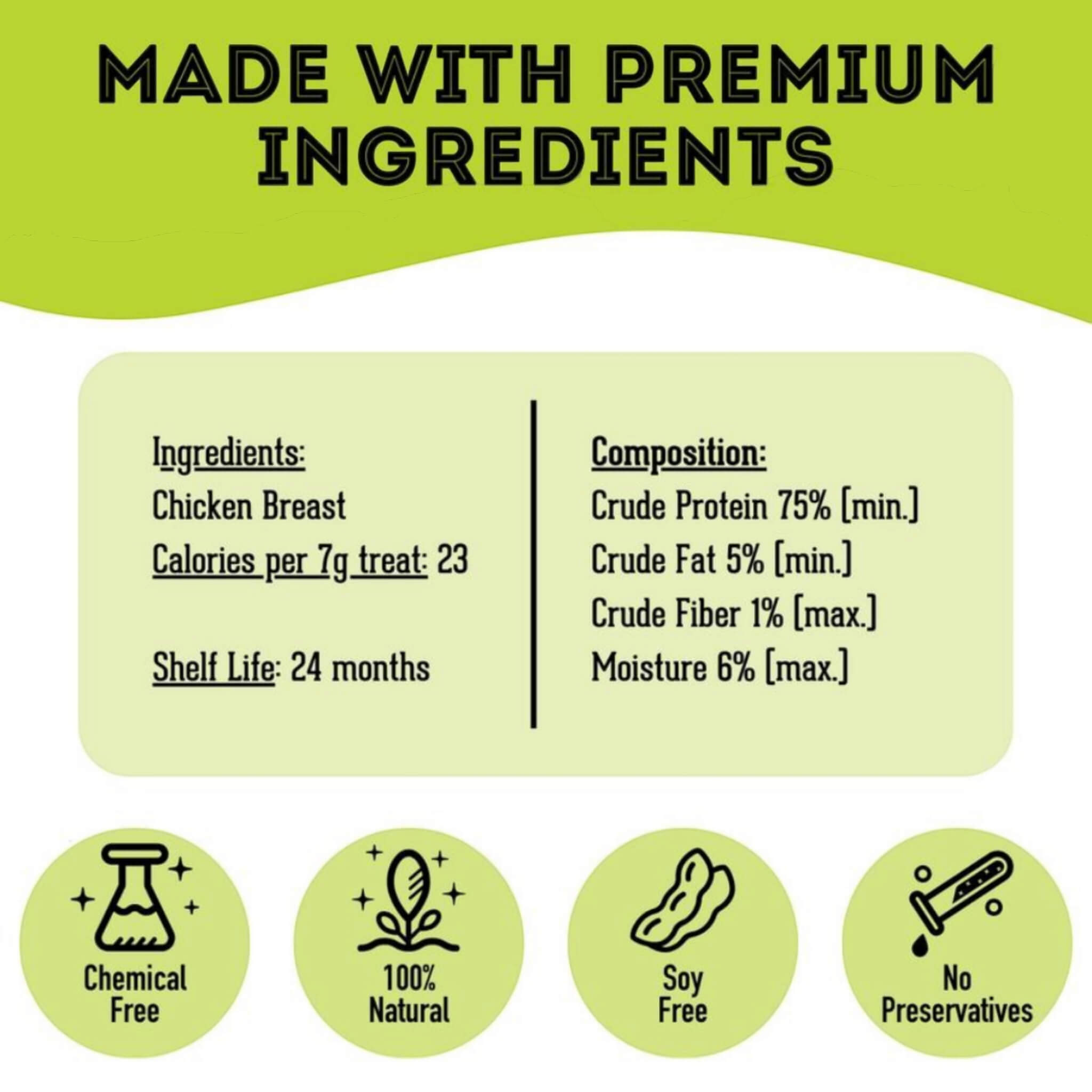 - Made from human-grade chicken breast sourced from Canadian federally inspected plants