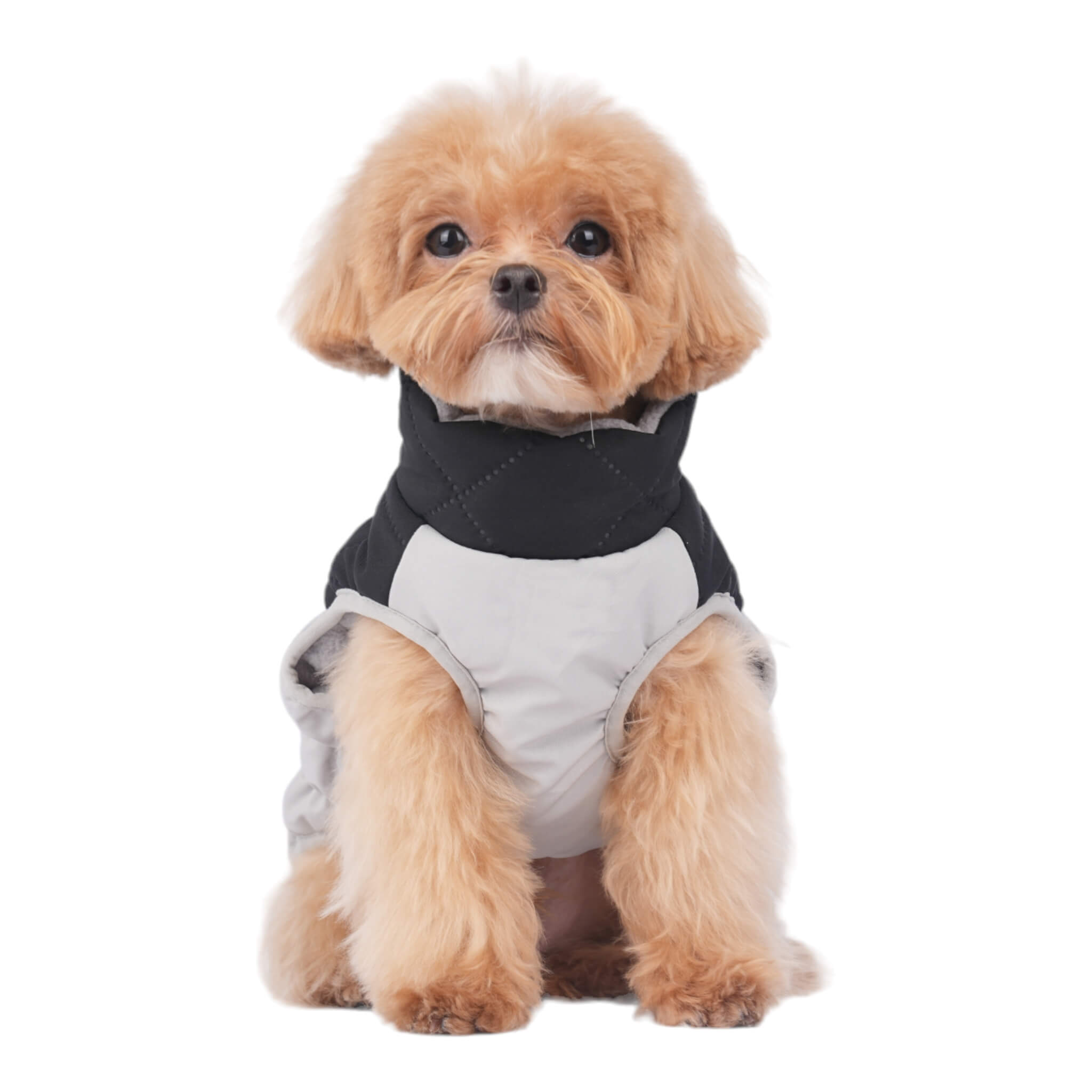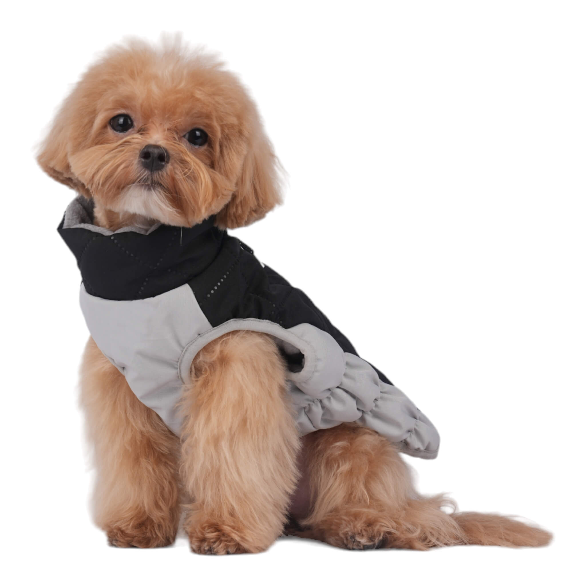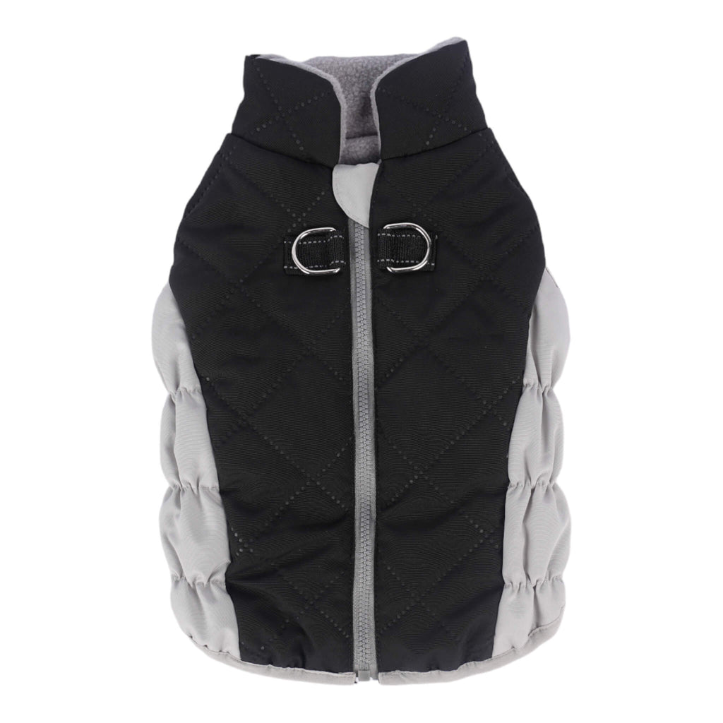 • Stylish and functional quilted winter dog coat