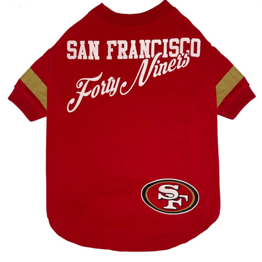 Rejoice in the joys of watching San Francisco, your favorite NFL team, take down the competition each week with your four-legged best friend at your side. This stylish T-shirt, designed especially for dogs, features the team's iconic colors and logo, letting your pup show off his team spirit in style!
