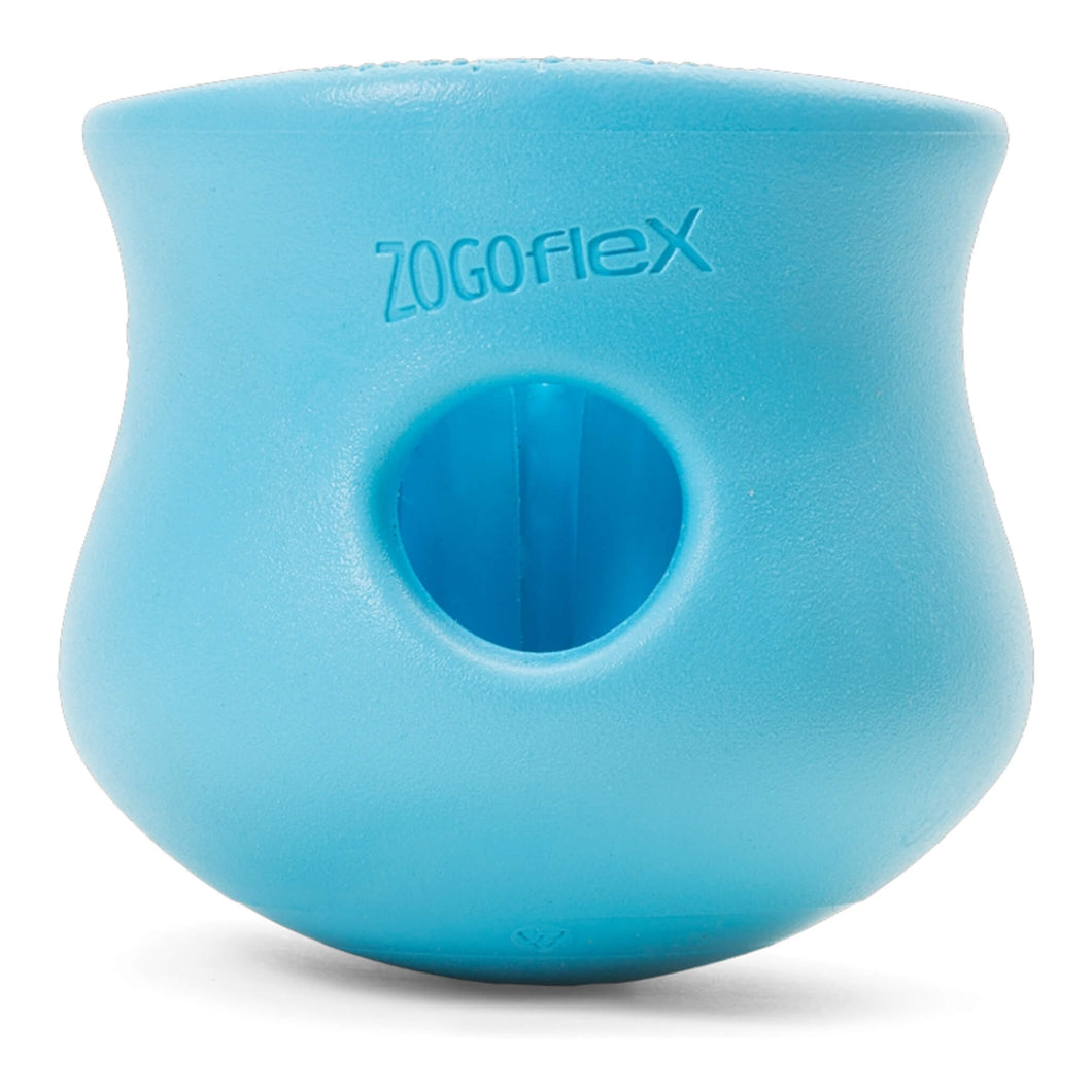 West Paw's Toppl is available in two sizes which you can snap together to give your dog even more of a challenge. Made from the company's Zogoflex material, this topsy turvy treat dispensing toy features soft rounded inner teeth with a contoured cavity that will hold your dog's favorite food or treats. Stuff the toy with any soft treat, such as peanut butter, or try cheese cubes or banana slices. Whatever you choose, the toy will provide your pooch with hours of delicious fun as he nuzzles and nudges it around trying to release the yummy contents.