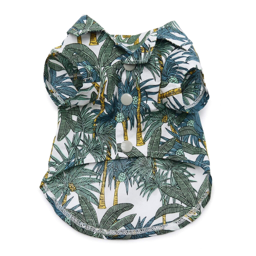 This super cute button up shirt is perfect for Spring and Summer get-togethers! With it's unique tropical palm tree print, it's not only stylish, but practical too, with a hole on the top for convenient leash attachment. A high cut belly ensures that the shirt won't get soiled at potty time.