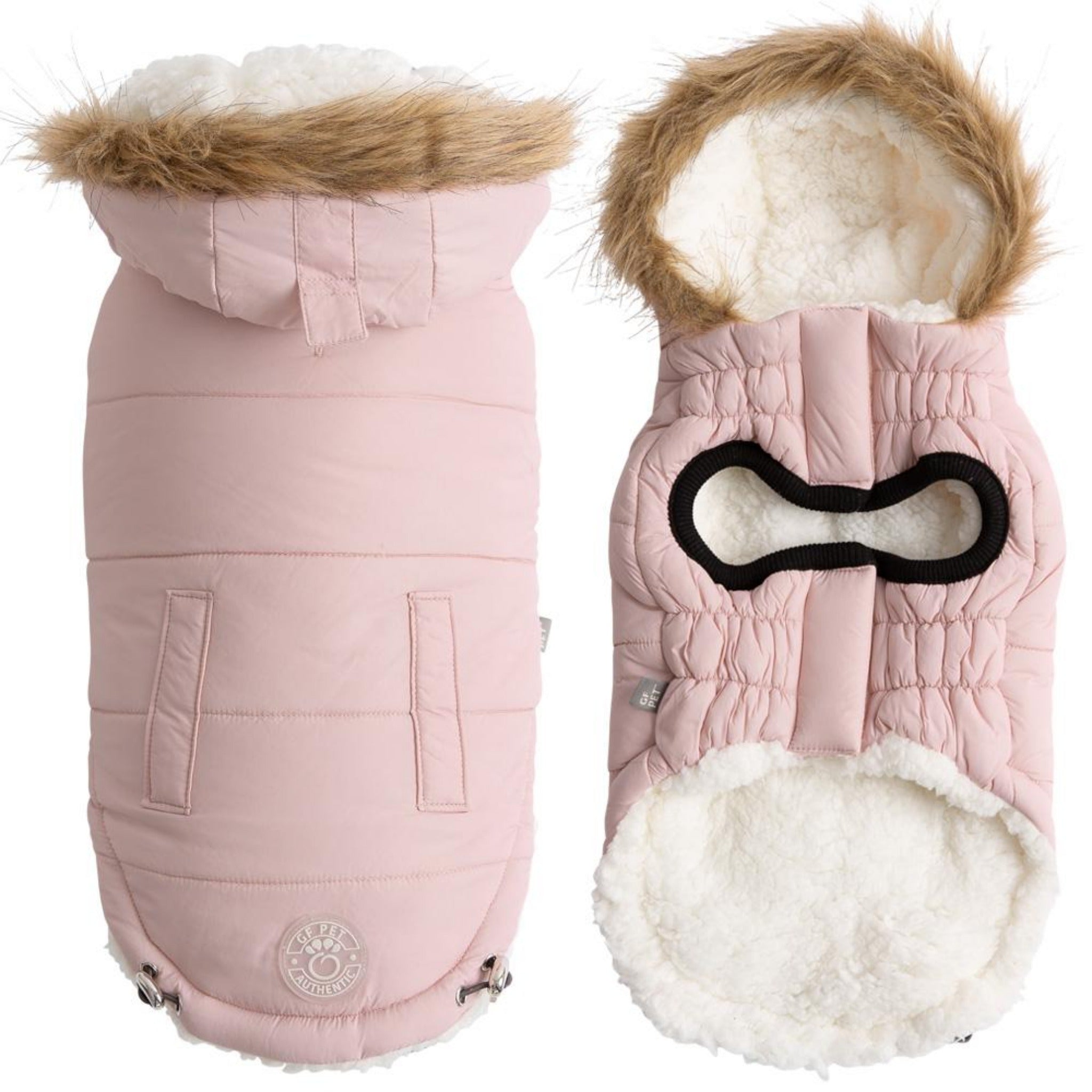 Both stylish and functional, your pup will definitely look the part this Winter when she's wearing her trendsetting Pink Urban Parka by GF Pet! This classic design is not only super stylish, but very functional. Water-resistant, the parka features a vegan fur trimmed hood, faux pockets and a beautifully luxurious popcorn Sherpa lining, perfect for those chilly Winter days just around the corner.  The parka's shell is made from 100% nylon, while the filling and lining are 100% polyester. Other features include a bungee cord with stoppers, a Velcro tab at the hood, and GF Pet's patented Elasto-Fit Technology.